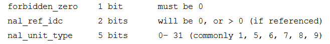 The 8-bit (1-byte) header of a NAL unit is deciphered as follows: