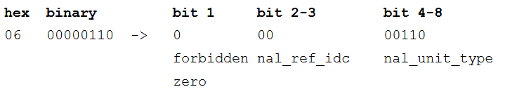 NAL unit header (hex) binary bit 1 bit 2-3 bit 4-8